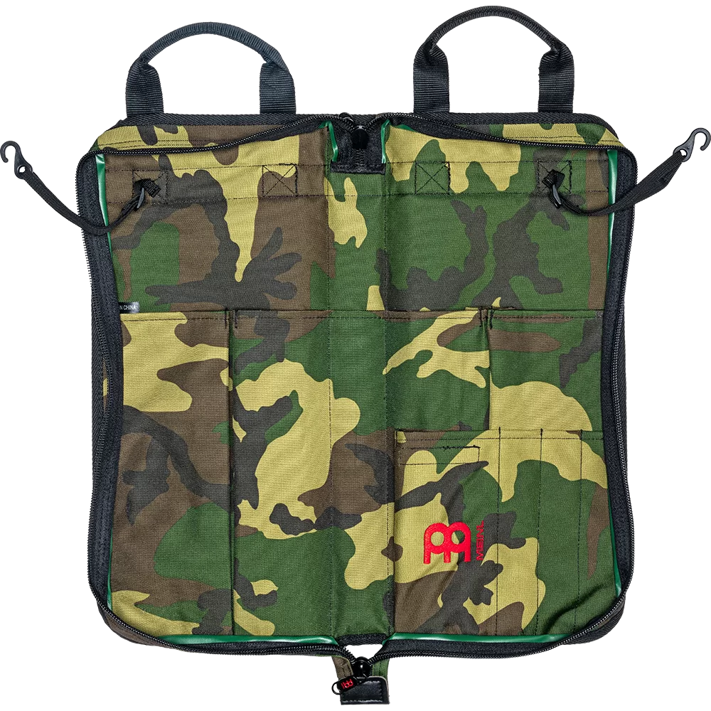 Con un bolsillo externo profundo y 9 bolsillos internos de diferentes tamaños, la bolsa de baquetas de camuflaje Meinl puede devorar una gran cantidad de baquetas, cepillos, varillas múltiples, mazos y accesorios. Para guardar tus palos.