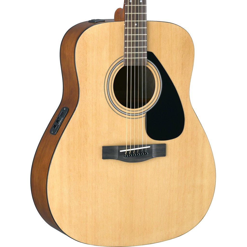FX310A es una guitarra acústico-eléctrica muy asequible con un cuerpo acorazado y una construcción estándar de Yamaha. Al estar en el rango de precios más bajo, FX310A está hecho de maderas tonales laminadas. Los aros y fondo de Meranti y la placa de sonido de abeto dan un tono fuerte, agradable y equilibrado. El mástil de Nato y el diapasón de palisandro se suman a la sensación general de equilibrio tonal. La placa de sonido está encuadernada en negro sutil y tiene un golpeador de plástico negro. El puente de palisandro en la placa de sonido balancea el contorno de la campana y tiene una pastilla piezoeléctrica debajo de la montura de plástico. La pastilla está emparejada con un preamplificador de montaje lateral, que se instala de cara al jugador. El mástil de la OTAN tiene el perfil estándar, la junta de cola de milano en el traste 14 y el radio estándar. El diapasón de palisandro con 20 trastes, incrustaciones de puntos y tuerca de plástico también es una característica estándar de la serie FX.