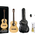 Córdoba 1 Requinto Tamaño 1/2 de la guitarra está hecho a mano con un superior de cedro sólido y trasera y laterales de caoba. El hand-inlaid All-Natural y roseta de madera palisandro indio Detailing distingue este modelo de otras guitarras en este rango de precios. Está diseñado con el estilo tradicional 5-Fan Torres Bracing para producir un sonido rico español a pesar de su diminuto Longitud de cuerda.